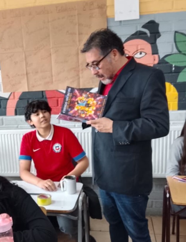 Hoy arrancó la entrega de ejemplares del libro «Código Secreto de Héroes» y el desarrollo de talleres dirigidos a los 38 alumnos del octavo año A de la Escuela Rural La Vara. El proyecto cuenta con el respaldo de la Dirección de Educación Municipal —a través de Faustino Villagra— y del director del establecimiento, Luis Ulloa.